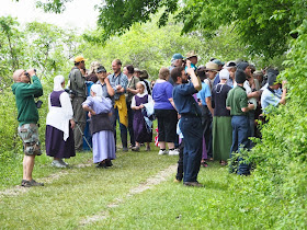 | A crowd of birdwatchers looking for one little Connecticut Warbler, May 16, 2015 |